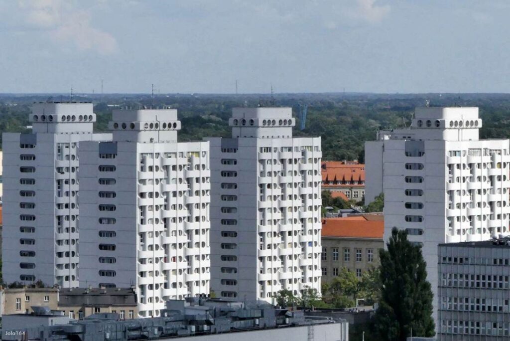 Wrocławski Manhattan, choć lata mijają, wciąż żyje swoim rytmem i niezmiennie pełni swoją funkcję. Te charakterystyczne „sedesowce”, tak dobrze znane mieszkańcom miasta, nadal są użytkowane i stanowią jeden z najbardziej rozpoznawalnych punktów na mapie Wrocławia. Mimo że czas odcisnął na nich swoje piętno, budynki wciąż tętnią codziennością — ludzie mieszkają, pracują, przechodzą, a cały kompleks pozostaje częścią miejskiego krajobrazu, który z uporem trwa, choć świat wokół nieustannie się zmienia.